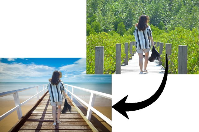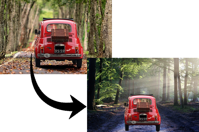Replace the background of a photo or image with a solid color or another background image, either from our library, Pixabay or your own background.